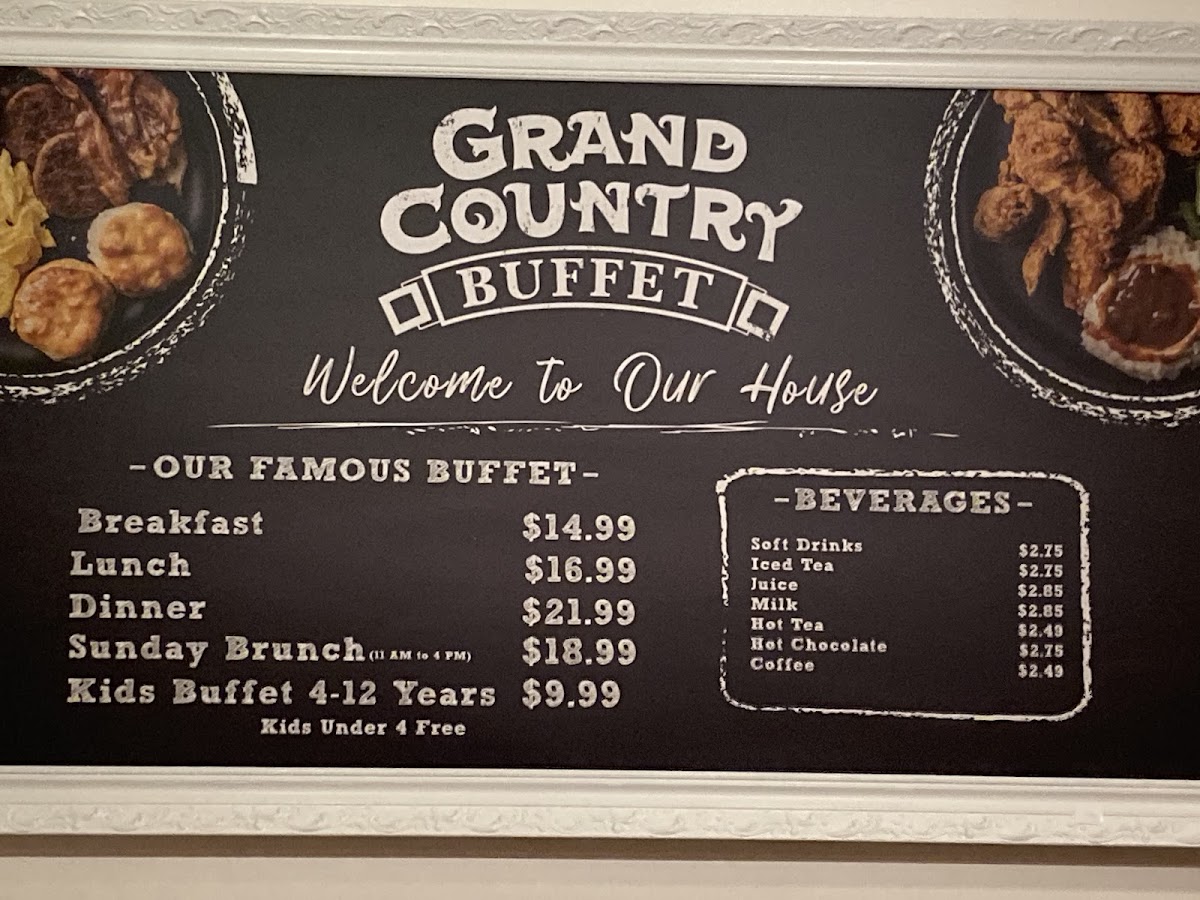 Grand Country Buffet Menu